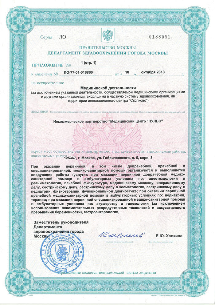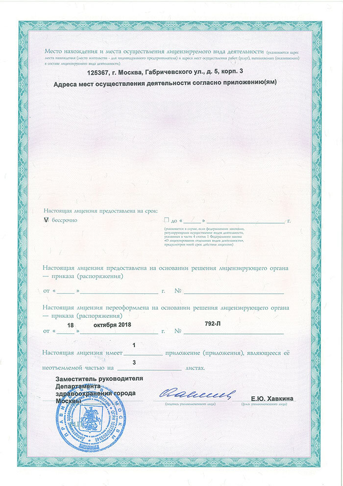 Лицензии клиники "Мосмед"